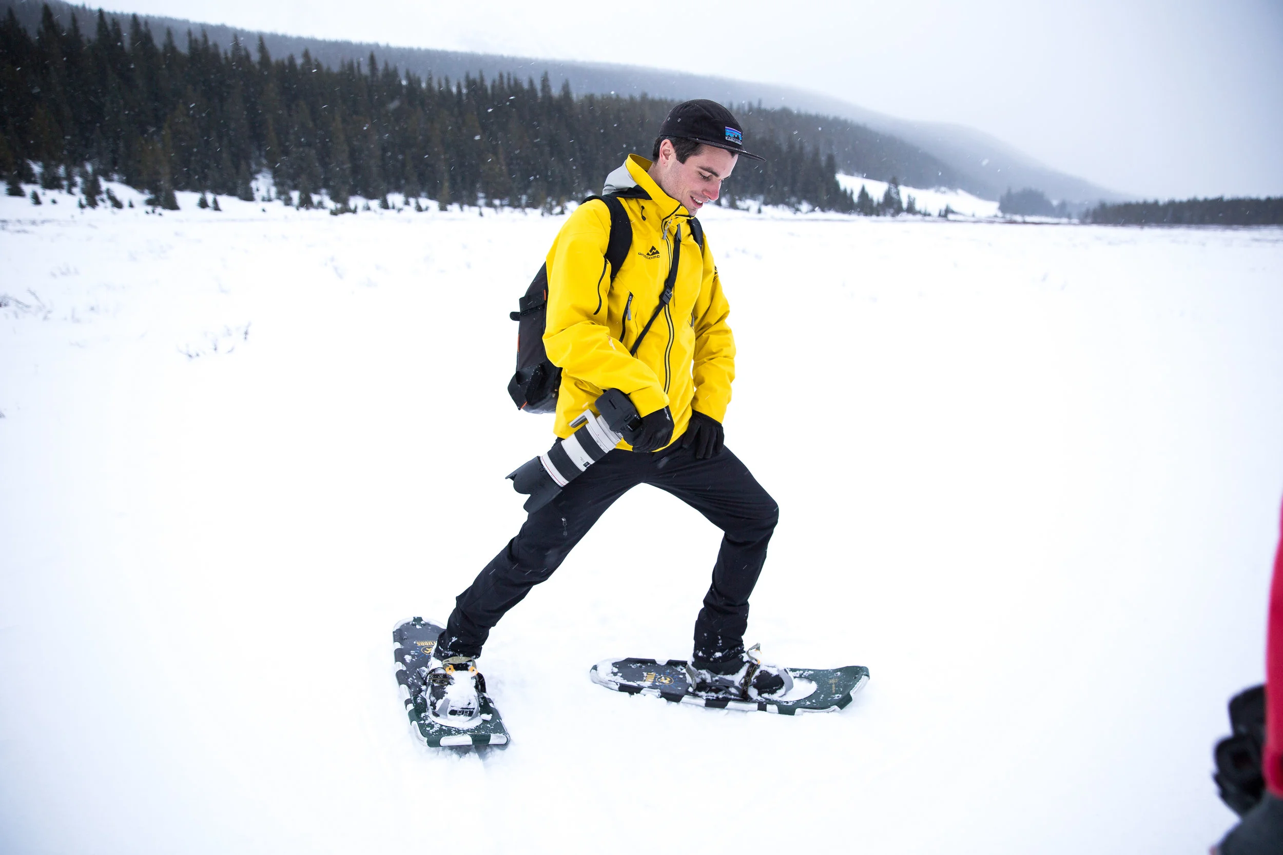 We decided to go for a little evening snowshoe after some delicious tea time. You never go hungry at Mt Engadine that's for certain. It started to snow pretty hard by that point and the view of the lodge resembled a snow globe. Thankfully it wasn't very cold outside and Bec, being from Australia, was trying to figure out how snowshoes work. It was quite entertaining and I really recommend bringing someone who has never snowshoed before because it will never be boring.